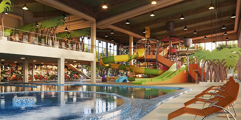 Indoor and outdoor adventure pools, children’s pools and slides make the experience more colorful and exciting.